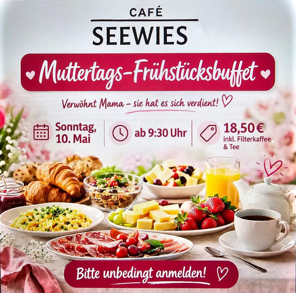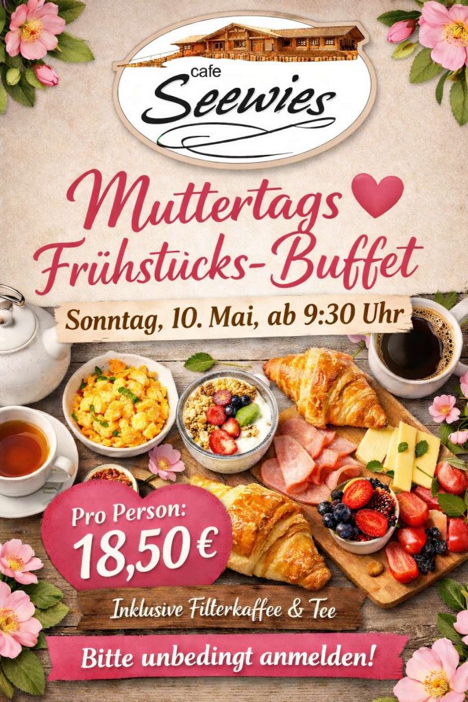 Sie erreichen uns per eMail info@cafe-seewies.de oder telefonisch unter (0160) 8805522.